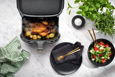 2000W F&B Digital Dual Heat airfryer har en kapacitet på 8 liter och 8 förinställda program för fritering, stekning, grillning och bakning. Dessutom möjliggör dess LED-pekskärm exakta temperatur- och tidsjusteringar.Läs mer om produkten