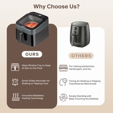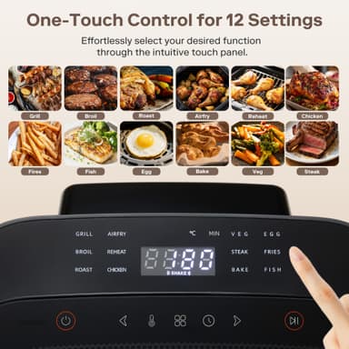 Förhöj din köksupplevelse med vår toppmoderna airfryer, designad för att göra hälsosamma, läckra måltider Den mångsidiga apparaten erbjuder 12 förinställda funktioner och en kraftfull 1700W motor som garanterar perfekta resultat.Läs mer om produkten