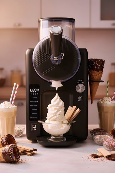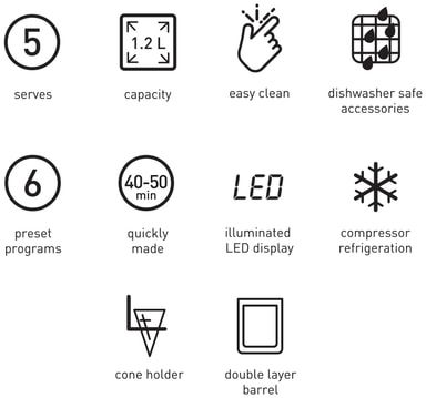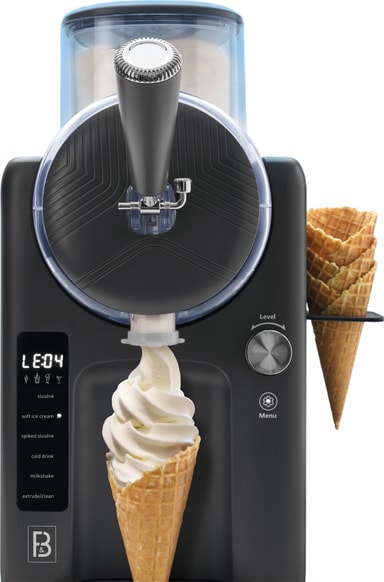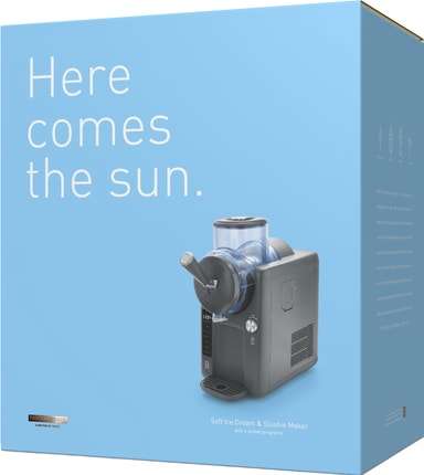 Njut av glass på 40-50 min med F&B Soft Ice & Slushie-maskin, 150W. Den har en 2L blandningsbehållare för bättre kylning och 1,5L slushie-kapacitet, nog för 8 personer.Läs mer om produkten