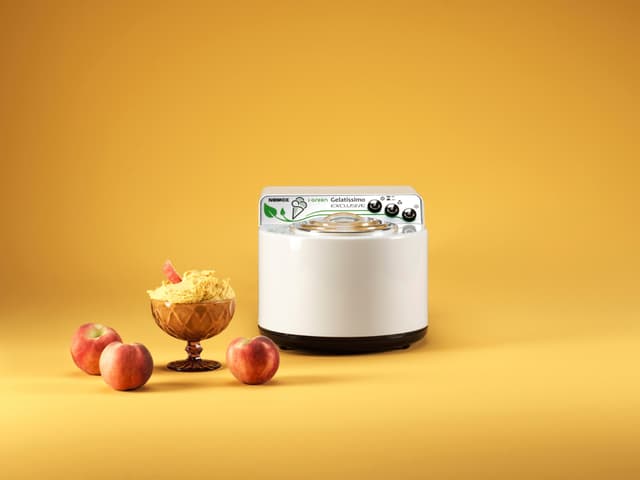 Gelatissimo Exclusive är en kraftfull glassmaskin för hemmabruk. Maskinen har en kapacitet på 1,7 liter och inbyggd kompressor, och du gör enkelt glass, mjukglass, frozen yoghurt i den fasta skålen och i den avtagbara skålen på bara 20 minuter.(0Läs mer om produkten