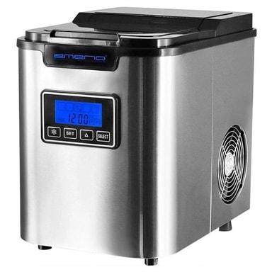 Var aldrig utan is med denna effektiva och coola ismaskin i snygg rostfri design från Emerio. Producerar hela 12 kg isbitar per dygn och du kan dessutom välja storlek på iskuberna! - avtagbar iskorg - val av isbitstorlek - digital skärm - indikatorlampa - På / Av knapp - alarm vid full behållare - halkskyddade gummifötter Specifikationer Volym vattentank: 2,2 liter Kapacitet: 12 kg / 24 timmar Tekniska data Märkspänning: 220-240 V Märkfrekvens: 50 Hz Märkström: 0,8 A Skummedel: C5H10 Kylmedel: R600a/24g Klimatklass: SN/N/ST/T