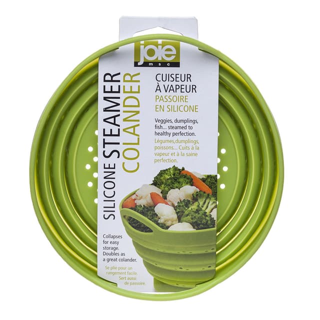 Ångkokare av silikon som är ihopfällbar. Placeras i en gryta med vatten i botten för att ångkoka t.ex. grönsaker . Diskmaskinssäker Mått: 14,5 cm i diameter.