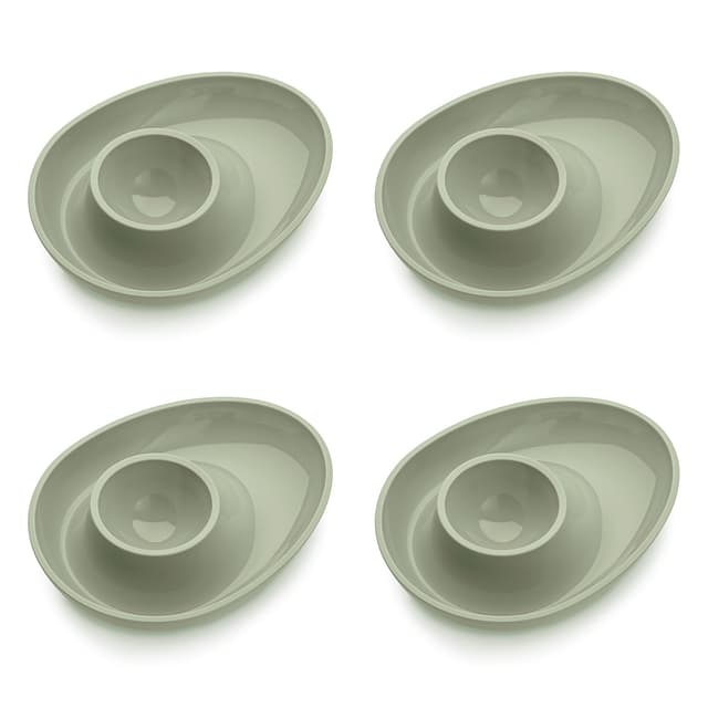 COLUMBUS ÄGGKOPP, 4-pack, Eucalyptus Grön Praktisk äggkopp i 4-pack med extra plats för sked, salt och äggskal. Äggkoppen är tillverkad i miljövänlig, giftfri plast, designad i Tyskland av Koziol. En snygg detalj att ställa fram på frukostbordet. Höjd: 2,6 cm Bredd: 11,5 cm Djup: 9 cm Material: Thermoplast, fri från BPA och melamin. Färg: Eucalyptus Grön