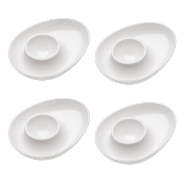 COLUMBUS ÄGGKOPP, 4-pack, Vit Praktisk äggkopp i 4-pack med extra plats för sked, salt och äggskal. Äggkoppen är tillverkad i miljövänlig, giftfri plast, designad i Tyskland av Koziol. En snygg detalj att ställa fram på frukostbordet. Höjd: 2,6 cm Bredd: 11,5 cm Djup: 9 cm Material: Thermoplast, fri från BPA och melamin. Färg: Vit