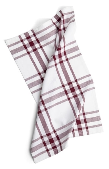 Rutiga kökshanddukar tillverkade av 70% återvunnen bomull.