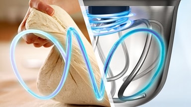 Lägg allt tungt arbete på din köksmaskin. Den ger perfekt jämn blandning och knådning med minimal ansträngning tack vare 3D-planetblandningen, som imiterar den verkliga rörelsen av knådning med händerna.