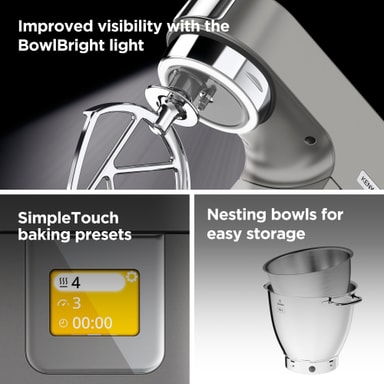 Njut av din bakning ännu mer. Med integrerad BowlBright-belysning får du perfekt överblick över hela blandningsprocessen.