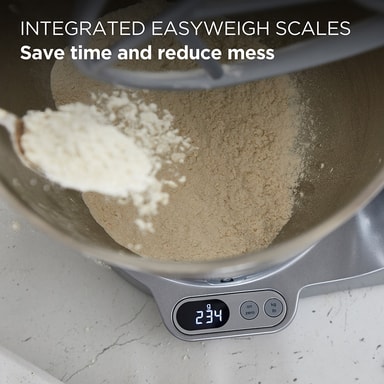 EasyWeigh-funktionen låter dig väga ingredienser direkt i skålen, mixern eller tillbehöret, vilket eliminerar behovet av separata vågar och extra kärl. Denna inbyggda precisionsvåg gör det möjligt att tillsätta ingredienser steg för steg med fullständig noggrannhet.