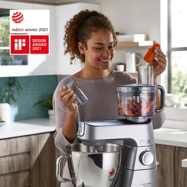 Var ett proffs i köket med en Kenwood Titanium Chef Baker XL köksmaskin KVL85.704SI. Denna maskin har integrerade EasyWeight-vågar, DuoBowl med 7l och 5l kapacitet och en effektfull motor på 1200 Watt för en rolig och enkel bakning.Läs mer om produkten