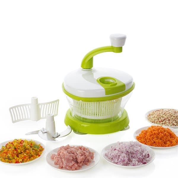 Den smarta maskinen som du letat efter. Med denna grönssakshackare gör du dina egna favoritsallader på några ögonblick. Tack vare den smidiga konstruktionen så är den perfekt för små kök som till exempel i båten, husvagnen eller varför inte sommarstugan. Den nätta storleken gör den också utmärkt när du vill hacka en mindre mängd sallad. Du får alltid professionellt resultat Gör Tacos på ett ögonblick. Slipp tårarna när du hackar lök.a För rengöring kan grönsaks hackaren smidigt plockas isär. Rostfria blad som lätt hackar hårdare frukter, grönsaker och kött, och en mixer för att vispa ägg, blanda och bereda. Kit levereras med: 3 rostfria blad för att hacka, 1 tillbehör för att vispa ägg, plast skål, ägg separator, lock med vev. Ingen elektricitet nödvändig Perfekt för små kök, båten, husvagnen eller sommarhuset Praktiskt lock för förvaring medföljer Perfekt för nötter, grönsaker, pesto, humus, salsa, guacamole, tonfiskröra, kycklingröra och mer Skålen är diskmaskinssäker, locket diskas för hand Storlek: 18*18*27cm Volym: 2 liter vikt:800gram Grönsakshackare / Grönsaksmaskin / hackare för grönsaker och frukter.