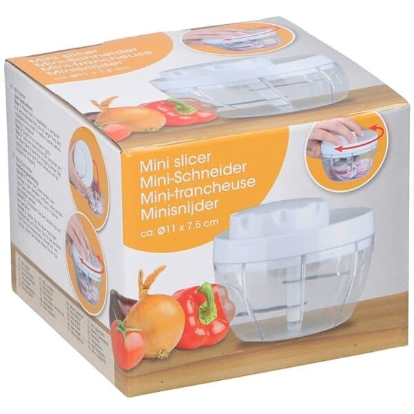 Minihackare 11x7,5cm du kan hacka grönsaker snabbt och enkelt med denna minihackare minihackaren kan användas för grönsaker, frukt, lök, vitlök och mer. Placera maten i behållaren - snurra ett par varv och grönsaken är klar att användas. - tillverkad av plast - rostfritt stålblad - enkel att använda - diskmaskinsäker + mått: 11 x 7,5 cm