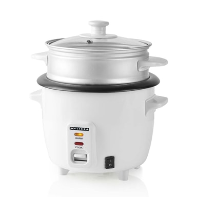 MELISSA Riskokare | 0,6 l | 300 W | Non stick-beläggning | Avtagbar skål | Ångkorg | Varmhållningsfunktion | Automatisk avstängning | Vit