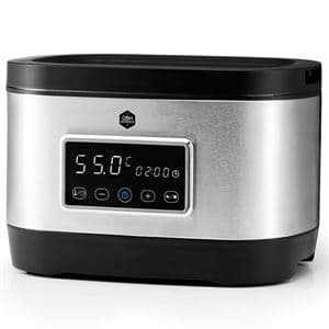 - Rymmer cirka 2,5 kg kött. Räcker för upp till 8 vakuumförpackade portioner ingår - Tyst magnetcirkulator får vattnet att cirkulera för exakt koktemperatur - Enkel att kontrollera genom stort fönster i locket - Timerfunktion upp till 72 timmar - Temperaturinställning 40-90°C med 0.1°C-steg