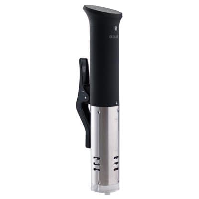 sous vide betyder ""under vakuum"" och har länge använts på restauranger över hela världen. Genom att först vakuum-förpacka kött, fisk, kyckling eller önskad råvara och sedan sänka ned dem i ett perfekt tempererat vatten gör att du kan uppnå fantastiska resultat. Du ställer in din sous vide på önskad temperatur, placerar den på kanten av en kastrull/gryta, startar timern och sen sköter resten sig självt. Eftersom temperaturen ligger helt stabilt finns ingen risk för att tillaga din råvara så att den blir torr. Temperaturen håller sig inom en noggrannhet på +/- 0,1°c tack vare att den cirkulerar vattnet. Efter tillagning steker du till din råvara, om så önskas, i en het stekpanna – vilket ger tex. Din köttbit en perfekt yta.