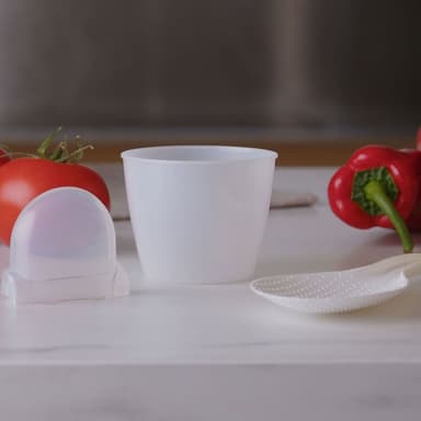 Välj när du vill att den ska börja laga mat, programmerbar upp till 24 timmar. Maxtemperaturen är 180°C och den har 8 säkerhetssystem för att undvika eventuella olyckor under användning. Den innehåller en komplett uppsättning tillbehör med: sked, måttbägare, ånguppsamlare och korg.