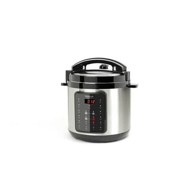 Den har en skål med kapacitet på 6 liter med non-stick-beläggning av aluminium för enkel rengöring. Dess effekt är 1000W och maxtrycket är 60kPa för snabb tillagning. Den har en LCD-display på framsidan som är enkel och intuitiv att använda. Kroppen på matberedaren är gjord av högkvalitativt och motståndskraftigt rostfritt stål.