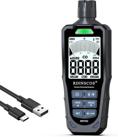 • NÖRDIC Kolmonoxiddetektor med LCD-skärm, bärbar CO-detektor för hem, camping, utomhus