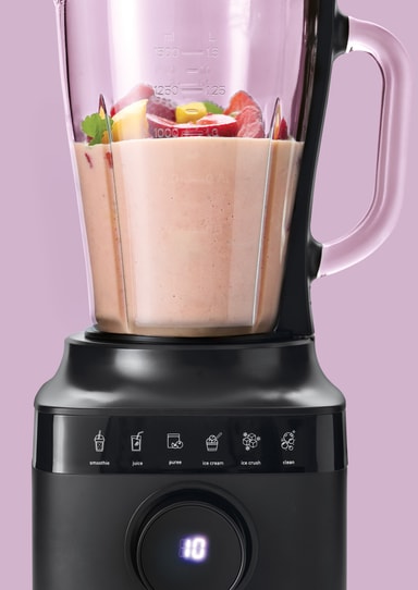 Enheten har en 1500W motor och en 1,5-liters EK1 glasbehållare, vilket ger gott om kapacitet för att tillreda större mängder smoothies, soppor, såser eller is.