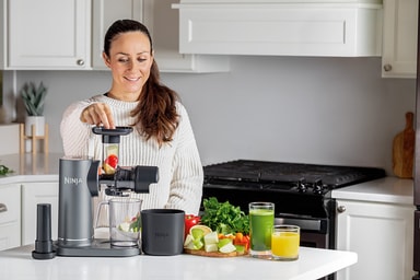 Ninja kallpressjuicer JC151EU ger färsk, näringsrik juice med långsam kallpressteknologi. Den stoppfria designen, fruktköttsfilter och den tysta, kraftfulla motorn säkerställer enkel juicepressning, minimalt skum och enkel rengöring.Läs mer om produkten