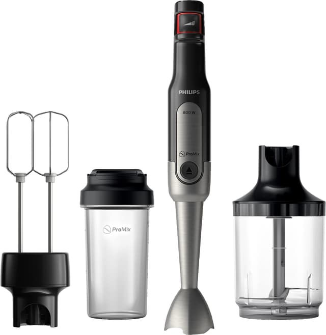 Philips Viva ProMix stavmixer HR2653/90 kombinerar lågviktsdesign med hög mångsidighet och kraftfull motor på 800 W. Oavsett om du behöver riva ingredienser till en färsk sallad, hacka grönsaker till en gryta, blanda en krämig soppa till perfektion, vispa ägg till en dessert eller göra läckra smoothies som du kan ta med dig till jobbet, så är denna stavmixer redo för uppgiften.