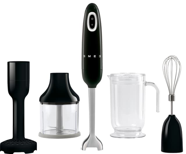 Snygga och mångsidiga Smeg stavmixer HBF22BLEU gör många av dina matlagningsuppgifter enklare tack vare dess kraftfulla 700 W motor, FlowBlend-system och bekväma hastighetskontroller. De medföljande tillbehören gör att du kan förbereda ett brett urval av recept.