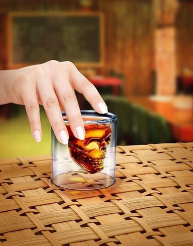 När du häller dryck i glaset kommer det alltså se ut som att vätskan sjunker nedåt i form av en dödskalle så att du kan dricka med stil!