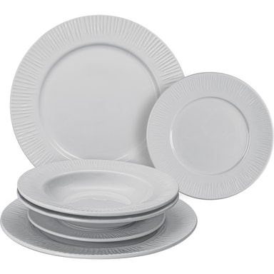 Vardagsservis innehållande: 2x grunda tallrikar, 2x djupa tallrikar och 2x desserttallrikar.Läs mer om produkten