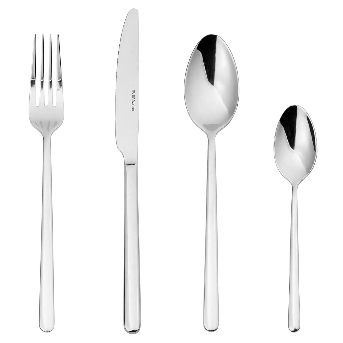 Monipuolinen aterinsetti klassiselta Eternumilta. Pakkauksessa on neljä veistä, haarukkaa, ruokalusikkaa ja teelusikkaa. Aterimet ovat kiiltävää ruostumatonta terästä 18/0, paksuus 2,5 mm.
