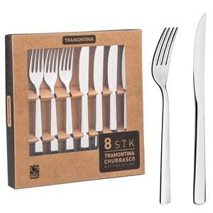 Detta biffbestickset från Tramontina är tillverkat i mycket hållbart rostfritt stål (18/10) och har släta, eleganta och blanka linjer. Gafflarna har polerade, fint rundade kanter så att de är extra bekväma att använda. Knivarna har tandad egg och är helt härdade, vilket garanterar en längre hållbar skärkant och större resistans mot rost. Dessa funktioner gör att de inte repar tallrikar och fat. Setet kan användas dagligen och tål diskmaskin.