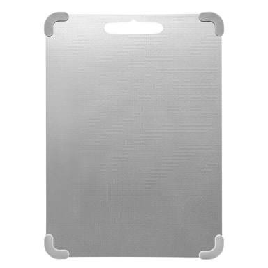 Dubbelsidig mångsidighet: Denna dubbelsidiga skärbräda erbjuder exceptionell mångsidighet för olika matberedningsuppgifter. Använd ena sidan för att skära rått kött och den andra för grönsaker eller tillagad mat för att förhindra korskontaminering. Titan kanten ger ett säkert grepp och förhindrar glidning under användning. Den släta ytan är skonsam mot knivar och hjälper till att bibehålla deras skärpa. Oavsett om du hackar, skivar eller tärnar, ger denna skärbräda en stabil och pålitlig yta för alla dina kulinariska behov. Dess dubbelsidiga design maximerar effektiviteten och minimerar risken för livsmedelsburna sjukdomar, vilket gör det till ett viktigt verktyg för alla kök.