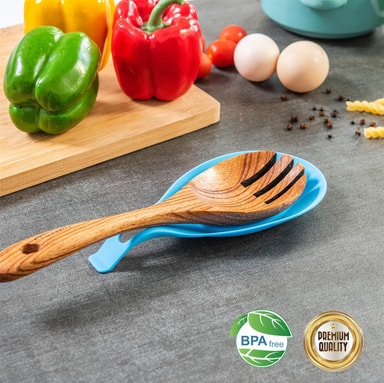 Den förstärkta basen håller dina redskap säkert på plats utan att falla omkull. Samtidigt är kökshjälpen återanvändbar, livsmedelssäker och temperaturbeständig från -40 till 230 °C.