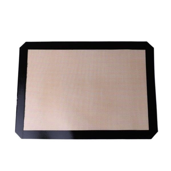 Bakduk i Glasfiber/Silikon Bakmatta i glasfiberförstärkt silikon, en duk som håller sig tålig och stabil. Kavla ut degen på mattan, fungerar fantastiskt bra till pajdegar m.m. inget mjöl behövs. Är tillverkad av slitstarkt glasfiber med en silikonbeläggning som gör att ingenting fastnar i den. Bakmatta i silikon som kan användas istället för bakplåtspapper och som klarar riktigt många användningar. Klarar att ligga i frysen, och klarar att följa med in i ugnen. Silikonmatta i 100% silikon. Lätt att använda och förvara, bara att rulla ihop efter rengöring. Bakduken kan användas både när du gräddar eller som underlag när du kavlar. Glatt yta som gör att degen inte fastnar. Behöver ej smörjas. Skär ej direkt på bakduken. Rengörs enkelt med vatten och en svamp. Du slipper att få intorkad deg på köksbordet. Går att diska i diskmaskin. Mått: 30 cm x 40 cm.