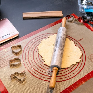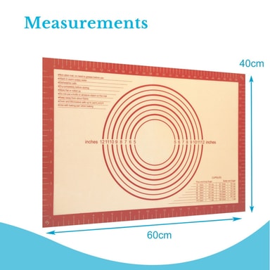 Mattan har storleksangivelser på ytan för längd och diameter. Det gör att du slipper mäta om när du kavlar ut deg och liknande.