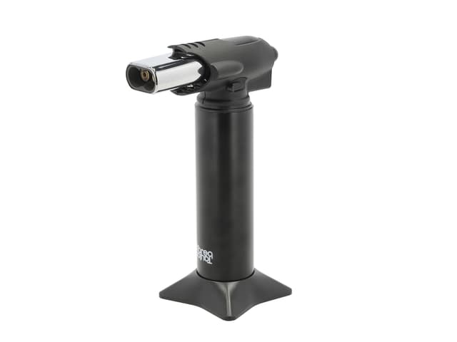 Flame gasbrännare med dubbla lågor blir snabbt en favorit i köket och hjälper dig att få en perfekt yta på allt från crème brûlée, maräng och smält ost till färsk fisk och grillade grönsaker. Brännaren har en kraftfull och stabil dubbel låga som kan justeras i intensitet och låsas, ett stödställ och en 27 ml påfyllningsbar gasbehållare.