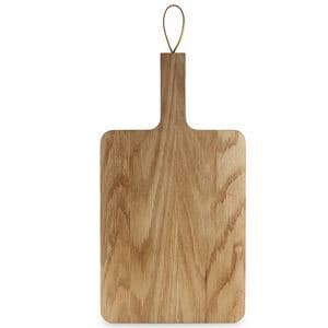 Skärbrädorna i Nordic-serien är naturliga och rustika. De är i massiv ek, vilket ger varje skärbräda ett unikt utseende. De rundade hörnen och kanterna gör skärbrädan behaglig att arbeta med. Den kan användas till att förbereda både kött och grönsaker, men också till att servera exempelvis tapas. När skärbrädan inte används kan den hängas upp i läderremmen, och den är lätt att rengöra med varmt vatten och diskmedel. Bör oljas in regelbundet. Tål inte maskindisk.