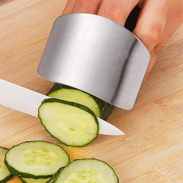 Fingerskydd rostfritt stål finger guard är gjord av rostfritt stål. Lätt att använda: detta fingerskydd bärs på långfingret och skyddar alla din fingrar när du skär eller hackar skyddets kant håller maten på plats medan du hackargrönsaker eller skär kött. Fingerskyddet levereras med en öppen ring, som gör att den passa de flesta fingrar. Material: rostfritt stål
