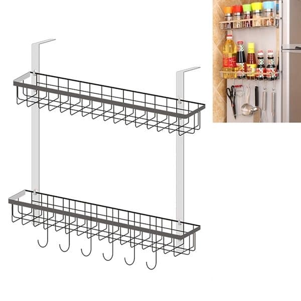 Kökshyllssystem Hyllsystem som du monterar på sidan av kylskåpet eller vid sidan av ett högskåp. Fästes på ovansidan och på sidan med självhäftande tejp. Perfekt att förvara saker som du använder ofta, köksredskap. kryddor, hushållspapper eller annat du behöver få tag i lätt. 2 hyllor och en rad krokar. Material: Rostfritt stål Storlek: 49,5x39,5cm