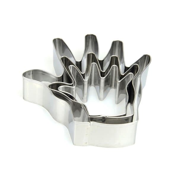 Bakformar i form som en hand söta kakformar i 3 olika storlekar som är formade som händer. Gör pepparkakor eller stansa ut kakor och vik in ett eller flera fingrar för att få en annan modell. - mått: 10.7 x 6.6cm, 9 x 6cm, 7.5 x 5.0cm - alla har höjden 2,5cm - material: rostfritt stål - går att rengöra i diskmaskin