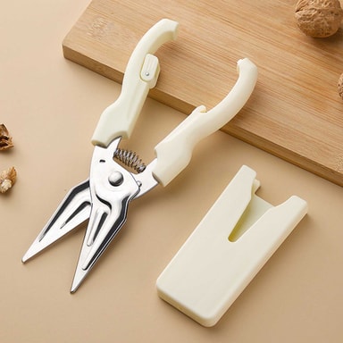 Säker Låsmekanism: Med en inbyggd låsmekanism säkerställer dessa kökssaxar säker förvaring och förhindrar oavsiktliga skärsår när de inte används. Låset håller säkert bladen ihop, vilket gör dem säkra att förvara i lådor eller redskapshållare utan risk för skador. Denna säkerhetsfunktion är särskilt viktig för hushåll med barn eller husdjur. Den användarvänliga designen möjliggör enkel låsning och upplåsning, vilket ger trygghet och förhindrar missöden under vardaglig användning i köket, och den är perfekt för säker hantering och förvaring.