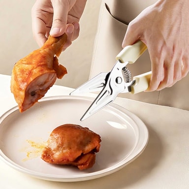 Mångsidigt Köksverktyg: Dessa fjäderfäsaxar är inte bara för kyckling! De är ett mångsidigt köksverktyg som kan hantera olika uppgifter, från att skära örter och grönsaker till att trimma fett från kött. De vassa bladen i rostfritt stål skär enkelt igenom olika livsmedel, vilket gör dem till ett viktigt verktyg för alla hemmakockar. De är också användbara för att öppna förpackningar och utföra andra köksuppgifter. Den ergonomiska designen ger ett bekvämt grepp, vilket minskar handtrötthet under längre användning. Detta ger effektiv och exakt skärning varje gång.