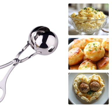 Rostfritt stål: Köttbulletången är gjord av premium rostfritt stål (304), som är hygieniskt och slitstarkt (kan diskas i diskmaskin). Det ergonomiska handtaget gör att du enkelt kan göra fina, jämna köttbullar utan ansträngning.