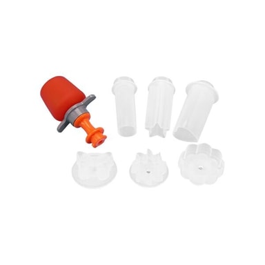 Skapa smakfulla matarrangemang med denna kreativa fruktskärare. Det perfekta kökstillbehöret för festen, middagen, eller till barnen. Snabbt och enkelt att göra: bara trycka, poppa ut, servera och äta. Skapar roliga, hälsosamma mellanmål och förvandlar måltiderna till roliga stunder - barnen älskar det! 6 olika formverktyg.
