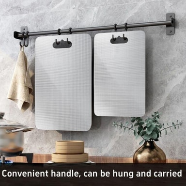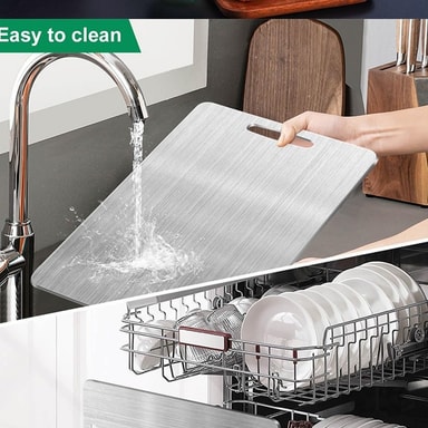 Antibakteriellt 304 stål: Tillverkad av premium 304 rostfritt stål, erbjuder denna skärbräda inneboende antibakteriella egenskaper, vilket gör det till ett säkrare och mer hygieniskt alternativ till traditionella skärbrädor i trä eller plast. Den icke-porösa ytan förhindrar absorption av vätskor och matpartiklar, vilket hämmar tillväxten av bakterier och mögel. Denna funktion är särskilt viktig för att förbereda rått kött och fågel, vilket minskar risken för korskontaminering och livsmedelsburna sjukdomar. Lätt att rengöra med tvål och vatten, denna skärbräda säkerställer en ren och hälsosam matlagningsmiljö för dig och din familj.
