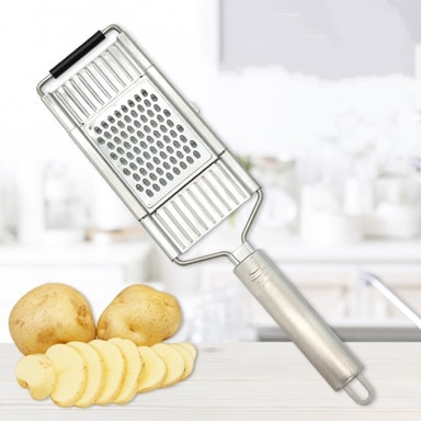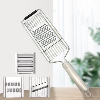 Multifunktionell design: Detta mångsidiga set innehåller ett rivjärn, en skärare och en julienneskalare, vilket ger dig flera skäralternativ i ett praktiskt paket. Ta itu med en mängd olika köksuppgifter med lätthet.