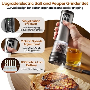 Elektrisk kryddkvarn i rostfritt stål, uppladdningsbar pepparkvarn med batteridisplay, justerbar grovlek