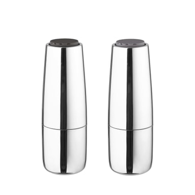 Salt- och Pepparkvarn, Polerad rostfritt stål, SALPI Både dekorativ och funktionell - Salt- och pepparkvarnen är en obligatorisk del av dukningen på bordet. SALPI har en smart och enkel låsfunktion och en elegant design. Nina Thöming står bakom designen, som är en modern och slank version av denna klassiska bordsikon. SALPI Salt- och pepparkvarn är en perfekt kompanjon till serviserna MIO och RO. Material: Polerat rostfritt stål/Keramik/Plast Mått: H 20 cm, O 7 cm. V 180 ml.