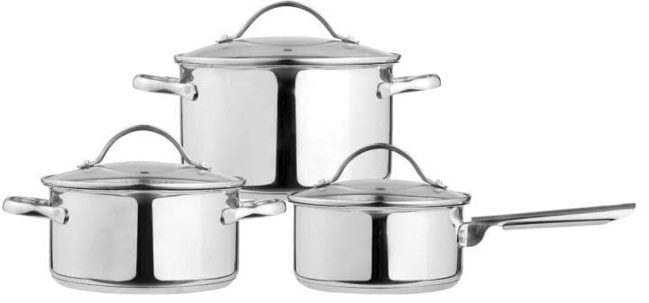 Uppgradera dina köksgeråd med nya grytor och en kastrull, här i ett förmånligt paketpris. Alla är tillverkad i rostfritt stål. Locket är i glas med hål på för smidig avrinning. Inuti finns en mätskala för volym.