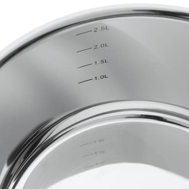En fördel med kastrullsetet Bologna är den praktiska mätskalan i liter på insidan, som gör att du kan mäta vätskor direkt i grytan utan att behöva använda en extra mätbägare. Glaslocken låter dig enkelt övervaka matlagningsprocessen, medan den integrerade ångventilen förhindrar att övertryck uppstår.
