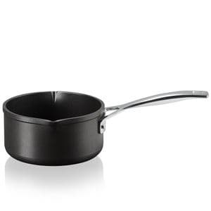 Den nya generationen non-stickpkrodukter har en beläggning som är fyra gånger mer slitstark än tidigare och tål användning av metallredskap. Mjölkkastrullen från Le Creusets Toughened Non-stick-serie passar särskilt bra vid tillagning av såser, gröt och andra mindre rätter som innehåller mjölkprodukter och ägg. Kastrullen har två hällpipar, en på var sida. Toughened Non-Stick-serien är gjord av pressat aluminium som leder värmen effektivt vilket gör kastrullen perfekt för tillagning av snabba rätter. Kastrullen har non-stick-beläggning både in- och utvändigt vilket underlättar rengöringen. Dessutom kan du använda mindre matfett i matlagningen. Grytan är lämplig att använda på alla värmekällor inklusive induktion och tål ugn upp till 260°C samt att diskas i diskmaskin. Beläggningen är PFOA- och PFOS-fri.