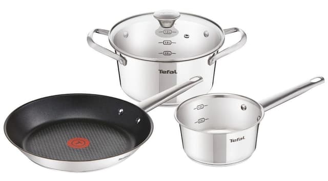 Med Tefal Simpleo set börjar du med enkelhet tack vare användbara funktioner som gör matlagningen bekväm och enkel. Simpleo kommer att laga mat på nolltid, kompatibel med alla spishällar, inklusive induktion. Setet inkluderar stekpanna på 28 cm, en kastrull på 16 cm/1,4 liter utan lock och en gryta 20 cm/2,7 liter med glaslock.